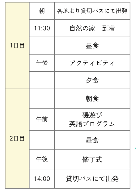 | 利用予定宿泊施設 | 南房総大房岬自然の家 千葉県南房総市富浦町多田良1212-23 TEL : 0470-33-4561 |