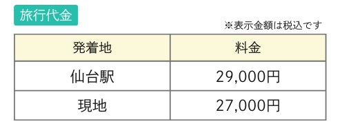 | 利用予定交通機関 | 貸切バス(株式会社みちのく観光 または同等クラス) |